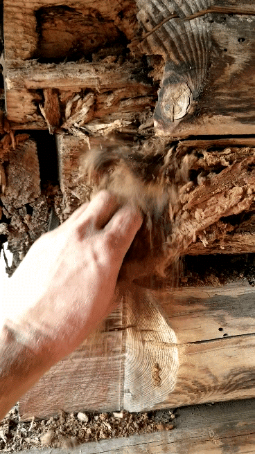 If it's severe — structural sagging, logs crumbling, widespread soft spots — it's still fixable. We've brought back homes that owners thought were total losses. But the longer you wait at this stage, the more logs need to come out and the higher the cost climbs.